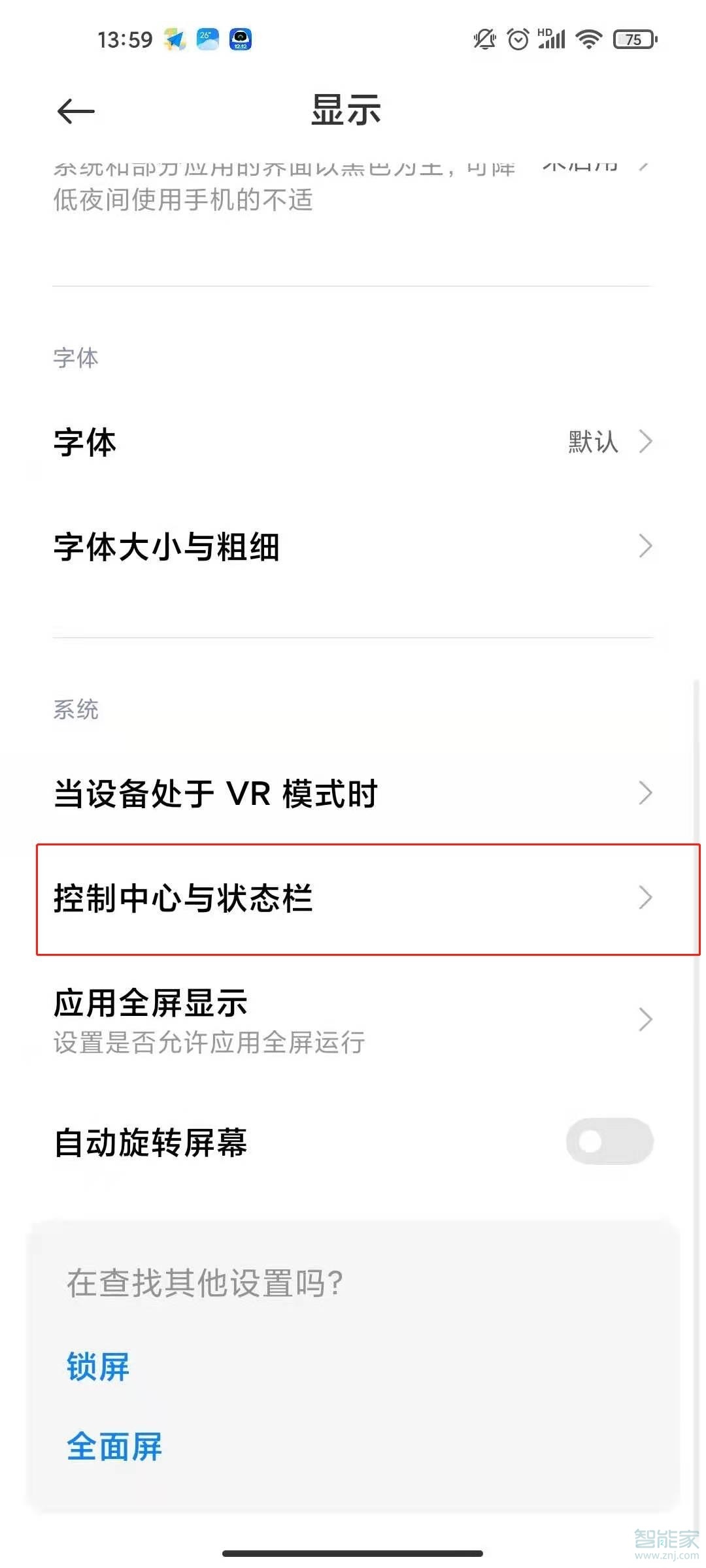 2、选择【控制中心与状态栏】。